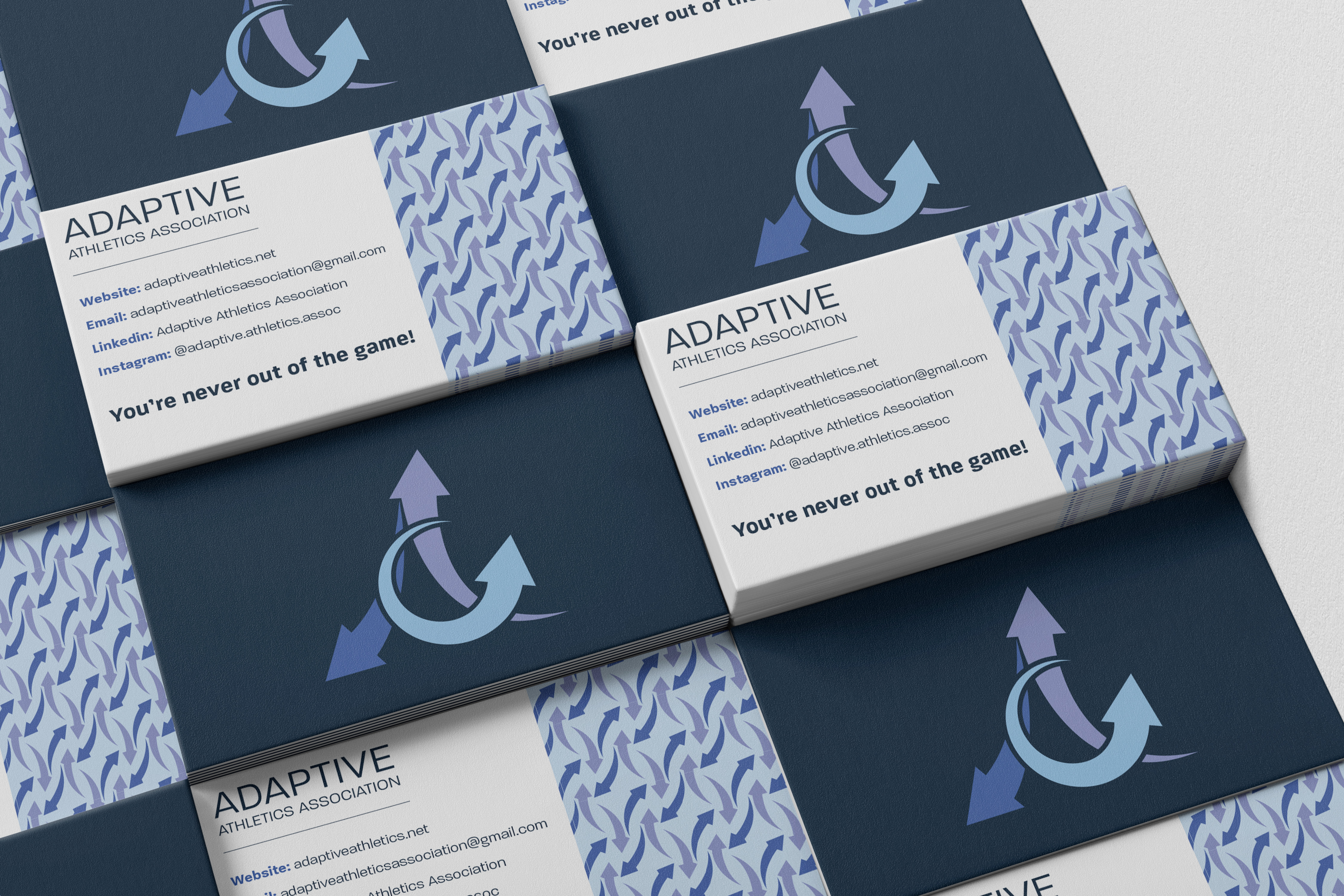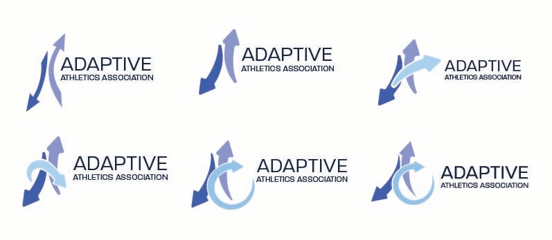 I started by researching the types of imagery that comes up when image searching key words like “Adaptation” “Sports” and “Athletics”. I ended up coming across arrow images and decided to use that as a basis for the logo. The arrows represent adapting and moving forward, both very important aspects of adaptive sports. My goal was to turn the arrows into an “A” shape. It went through many iterations until we landed on the final logo.